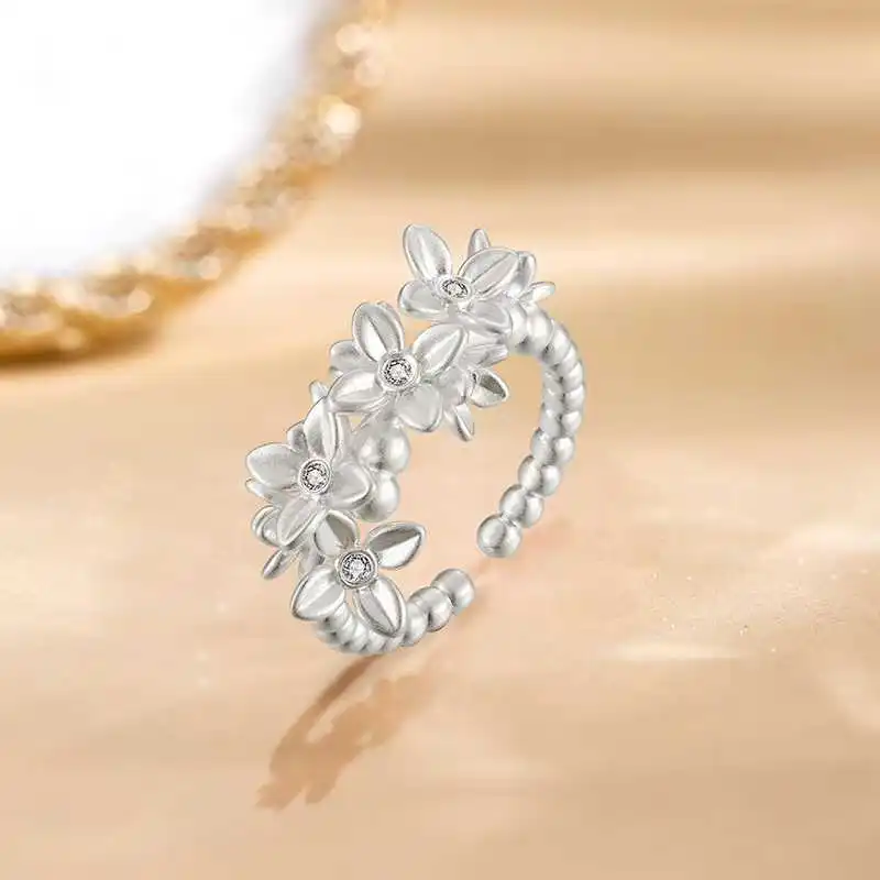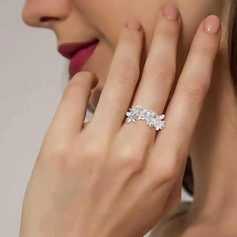 925 Sterling Silver Daisy Flower Ring High Quality Fashion with Rhodium and Gold Plating Classic Style